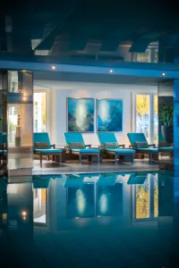 3 saunas, a roman steam bath, 14x7 metre pool, whirlpool, three outdoor terraces, pool bar and fitness area - always included in the room rate
