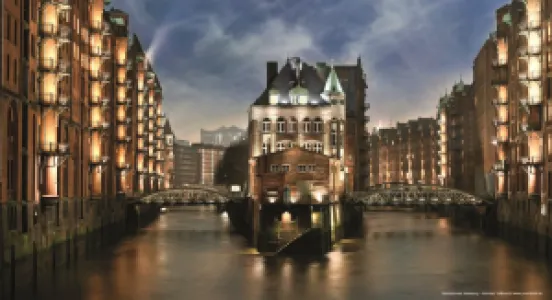 The Speicherstadt is more than 100 years old and is considered to be the world's largest contiguous warehouse complex. In 2015, it was declared a UNESCO World Heritage Site. Situated in the former free port, the red brick building ensemble, with its thick walls, copper roofs, and blocks and tackles, was built on oak piles between 1883 and 1888 and is among Hamburg's main attractions.