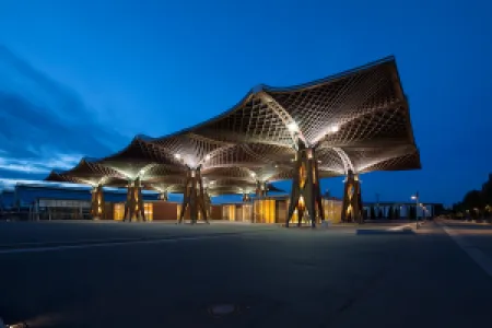 Located in the centre of the site, the EXPO-Roof is an impressive location of a special dimension. With the four wooden pavilions underneath, exhibitions, concerts and events can take place outdoors, yet protected from the weather. As a landmark of the EXPO 2000 world exhibition, the so-called EXPO wooden roof is the ideal location for a special kind of event.