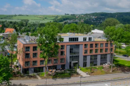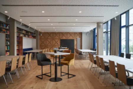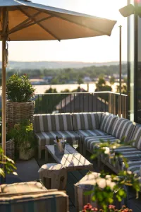 The Skybar at FREIgeist Göttingen Nordstadt sits atop the hotel and offers stunning panoramic views over the city skyline.