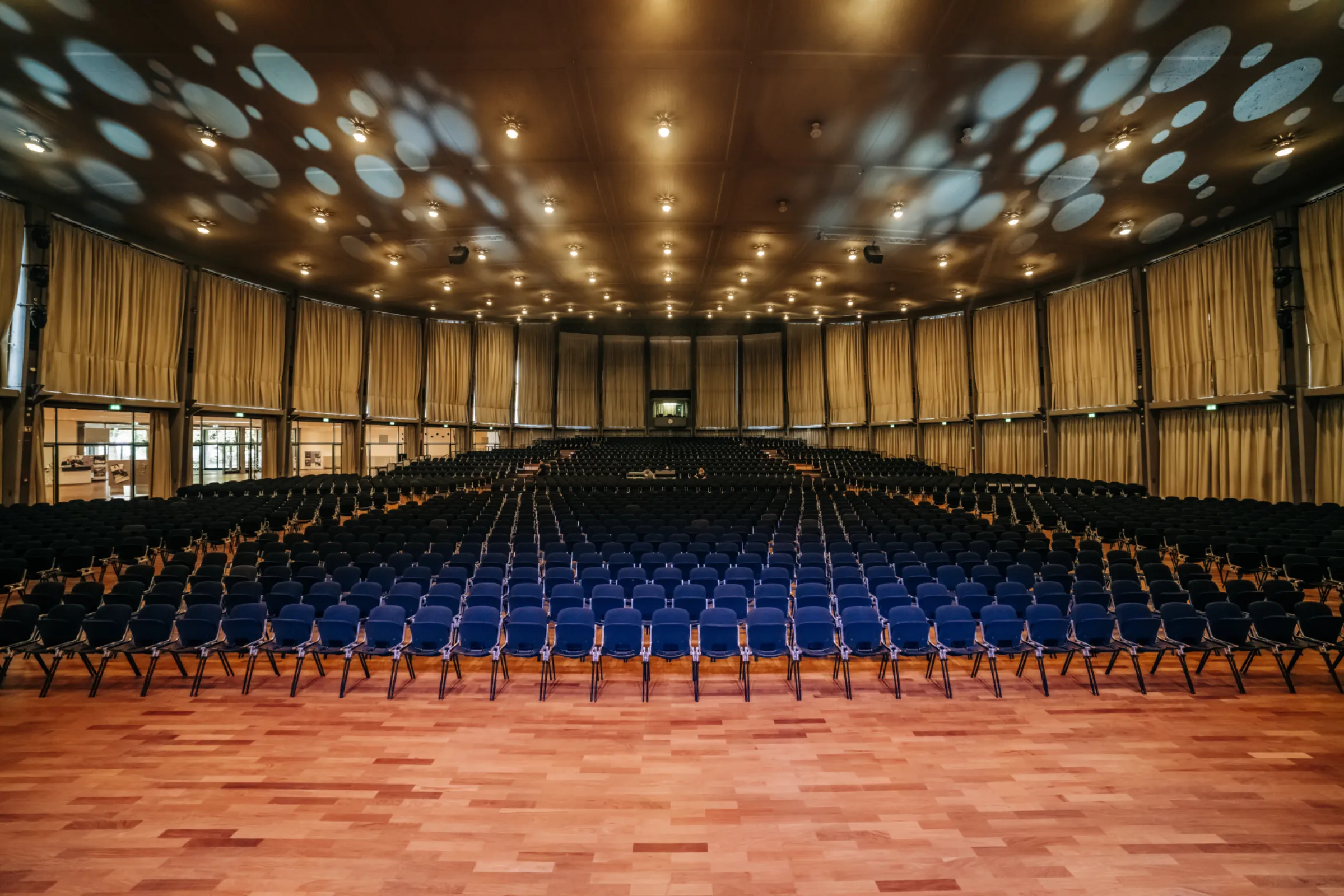 Built in 1953 with Europe's first self-supporting concrete roof, this venue offers 2,430m² of column-free space and exceptional acoustics. With its distinctive charm, spacious foyer, artists' dressing rooms and views over the Stadtgarten, it's perfect for concerts, shows and exhibitions. Combined with the Gartenhalle, the space expands to 10,000 square metres - ideal for atmospheric, large-scale events.